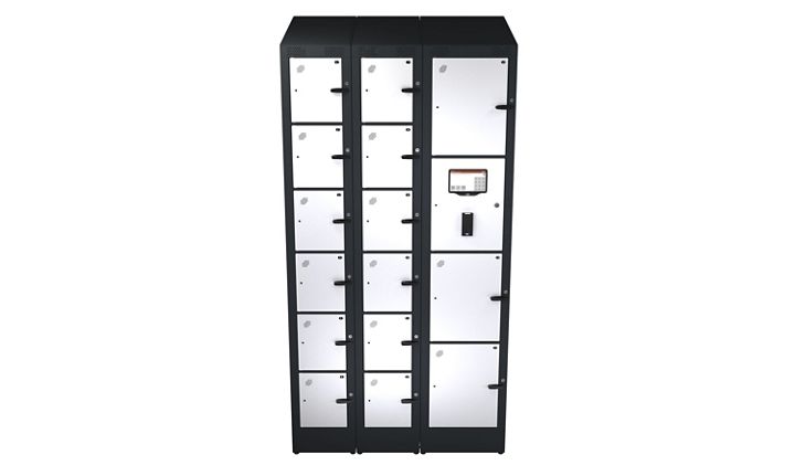 - Locker stack can be combined to form a system with up to 100 compartments